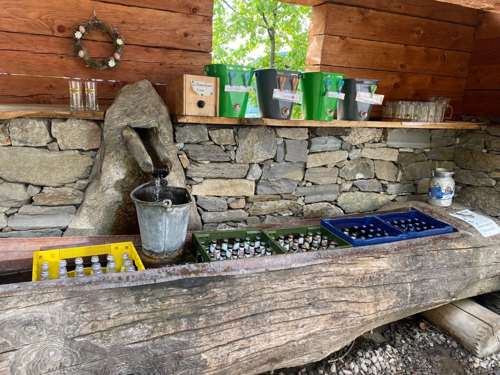 Dem Weg mal wieder bergauf folgend, mit kurzen Pausen für mich kamen wir an ein schönes sonniges Plätzchen mit kühlen Getränken.