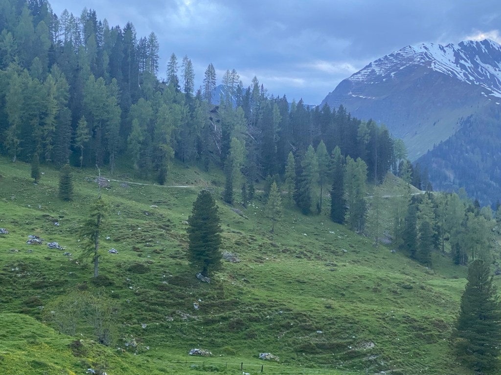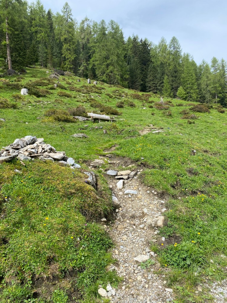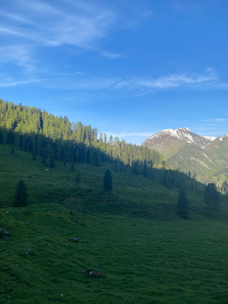 Völlig geschafft kommen wir ( eher ich) wieder an unserer Hütte an. Da wir die einzigen Gäste sind hat sie leider tagsüber geschlossen. Der Durst treibt uns runter ins Tal. Getränke und Süßigkeiten einkaufen😂. Danach sitzen wir entspannt in der Sonne auf dem Balkon.