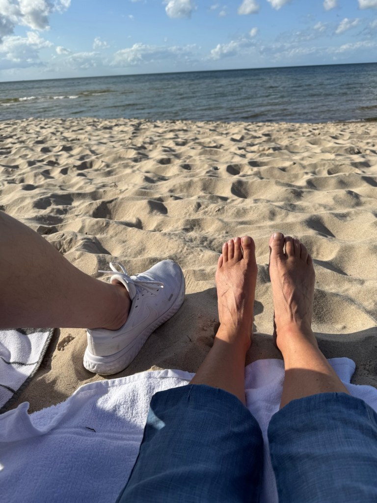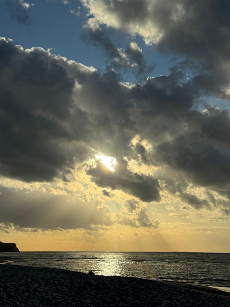 Um 16 Uhr kommt die Sonne raus und wir sprinten an den Strand.