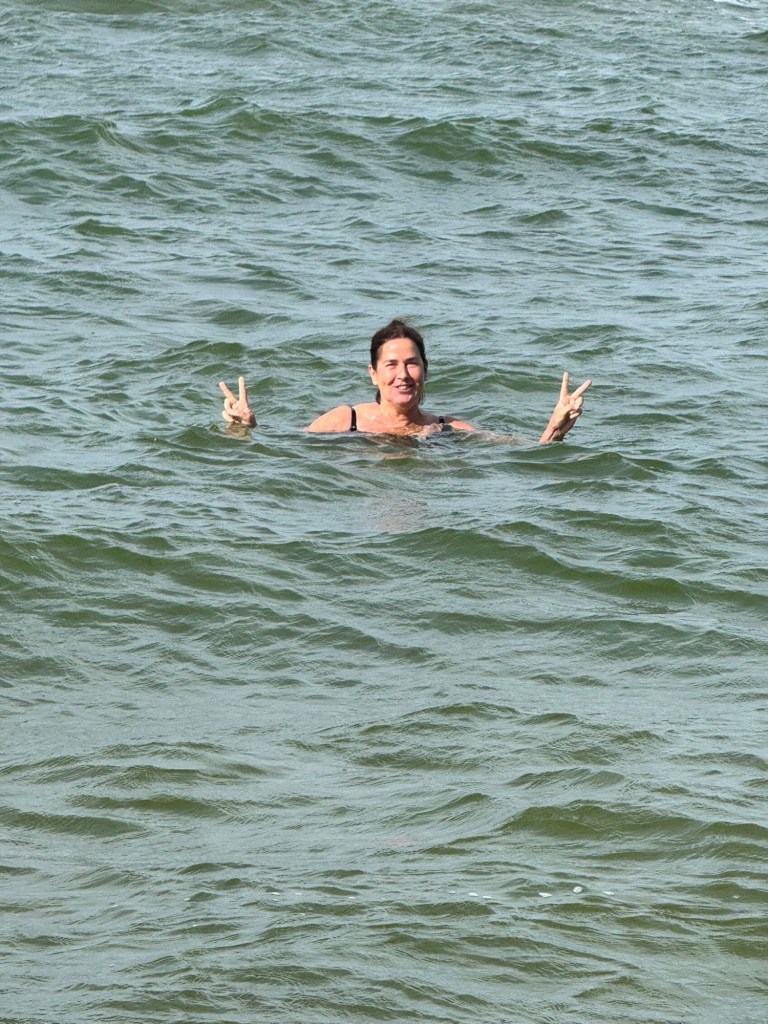 Aber dann geht’s los. Die Sonne kommt hervor und ich zieh meine Badesachen an.