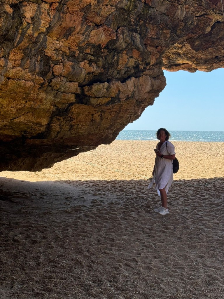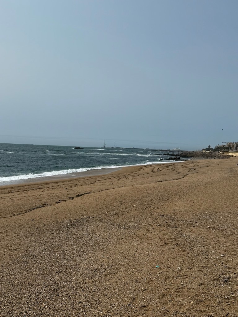 Nach dem Frühstück startet wir beladen mit Handtüchern an den Strand. Der Himmel ist bewölkt und es windet. Wir liegen fast allein am hinteren Teil des Strandes. Gegen Mittag kommt die Sonne raus und ich springe in die Fluten …