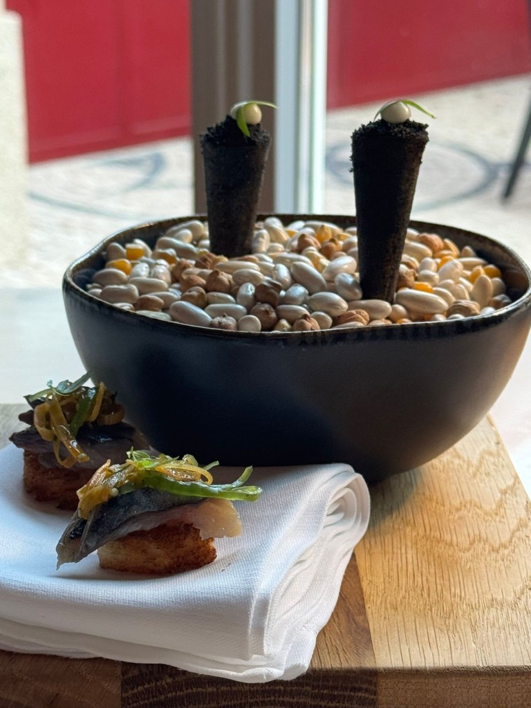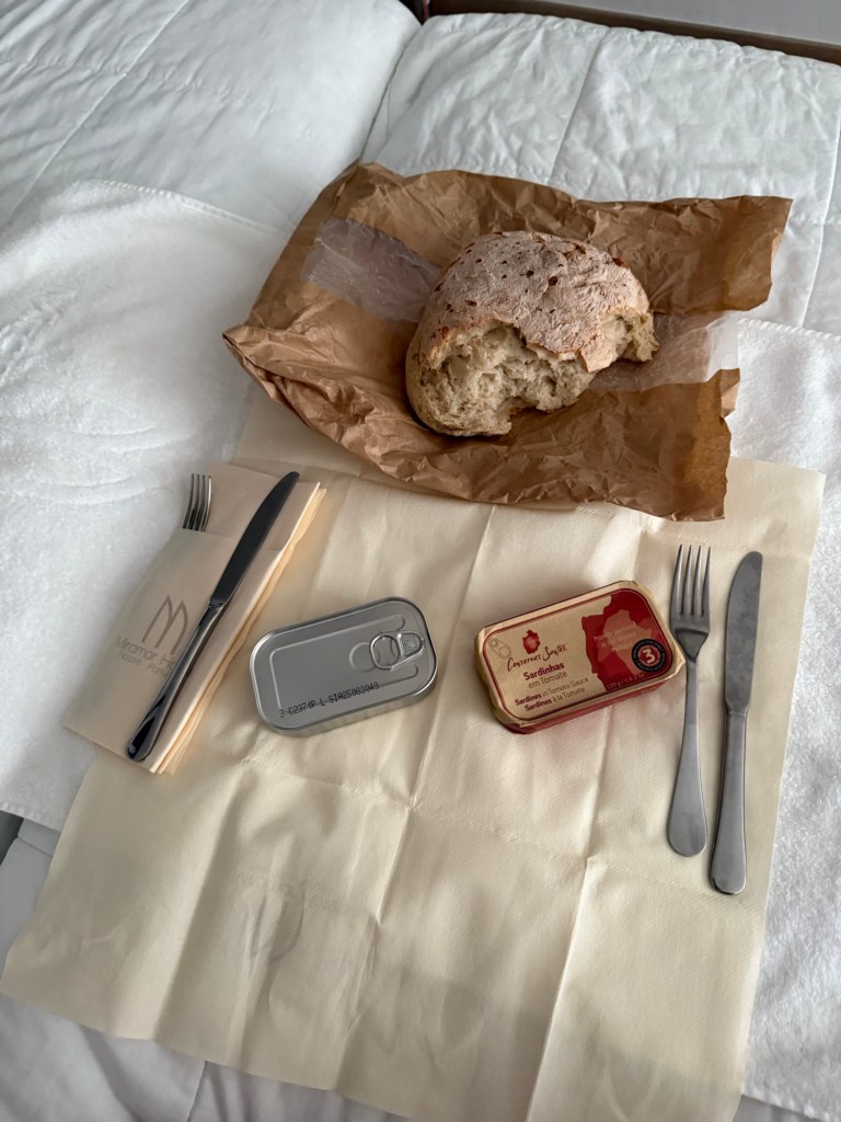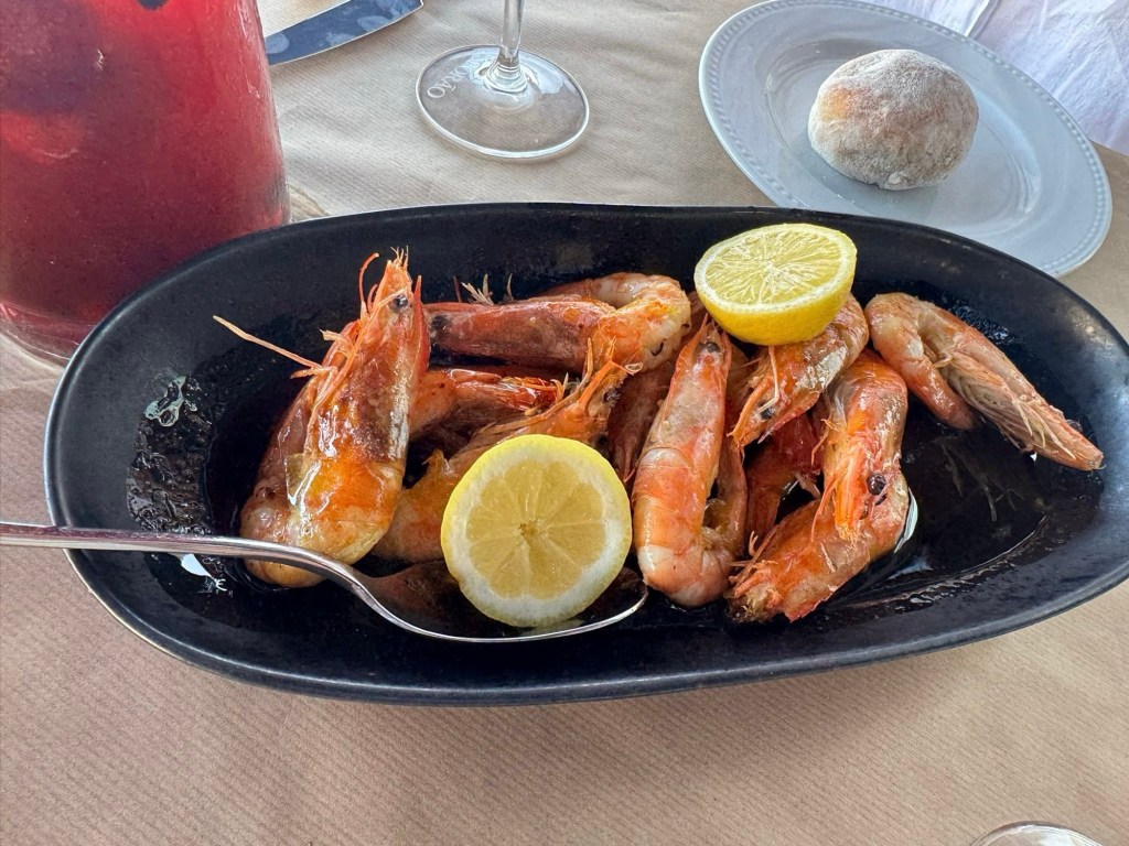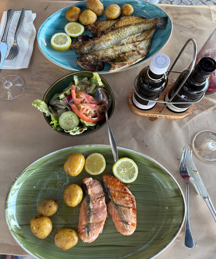 Als Hauptgericht habe ich gebratene Sardinen bestellt. Muss man ja mal probieren dachte ich, aber der Chef hat abgeraten😂. Daher gab es für mich Lachs und für Gerd eine Dorade.