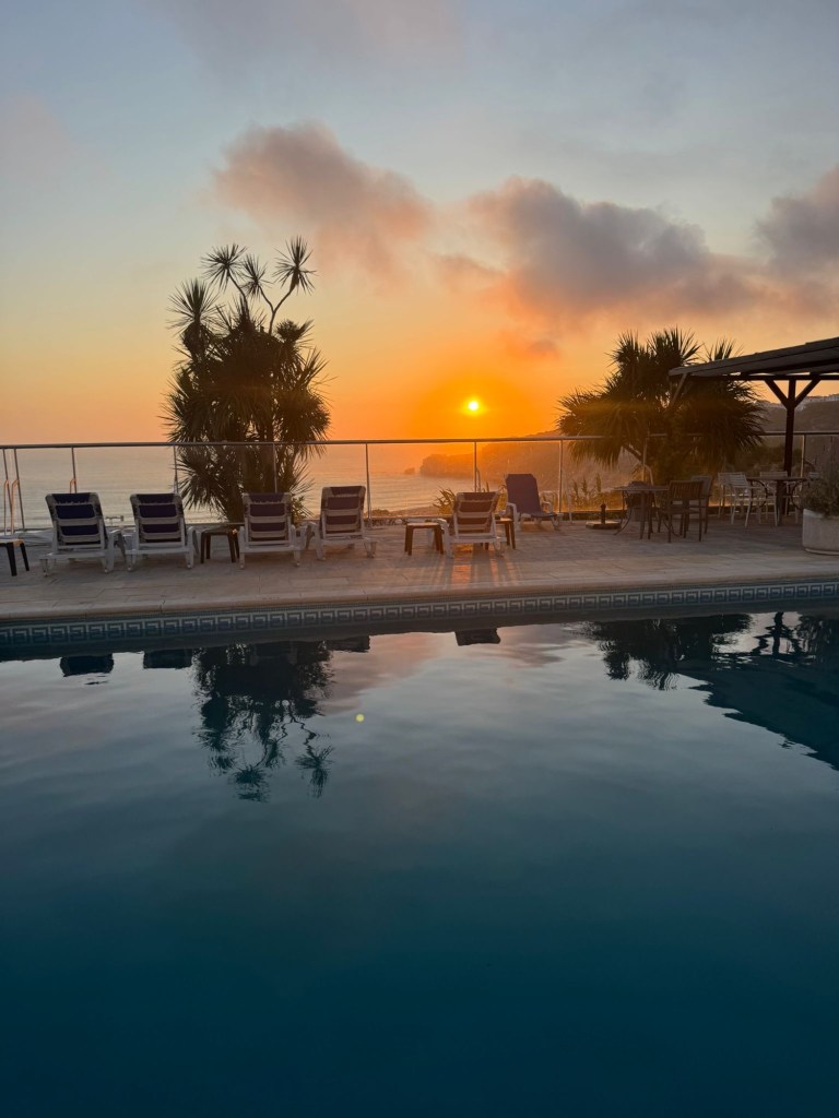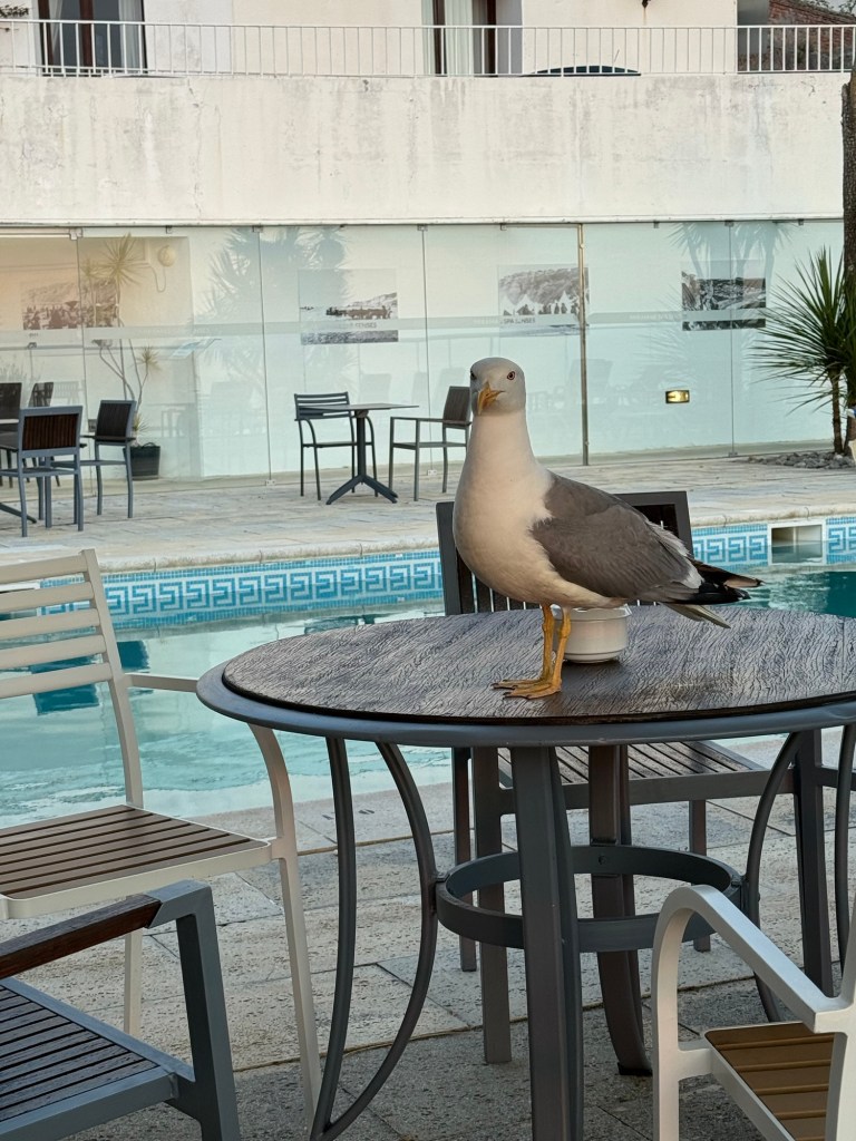 Zurück im Hotel geht es an den Pool. Der Himmel ist bis ca. 14 Uhr ziemlich bedeckt und es fallen auch ein paar Regentropfen. Die Portugiesen flüchten sofort, doch wir Touris genießen die Abkühlung von oben.