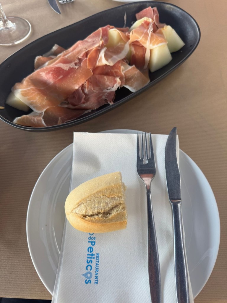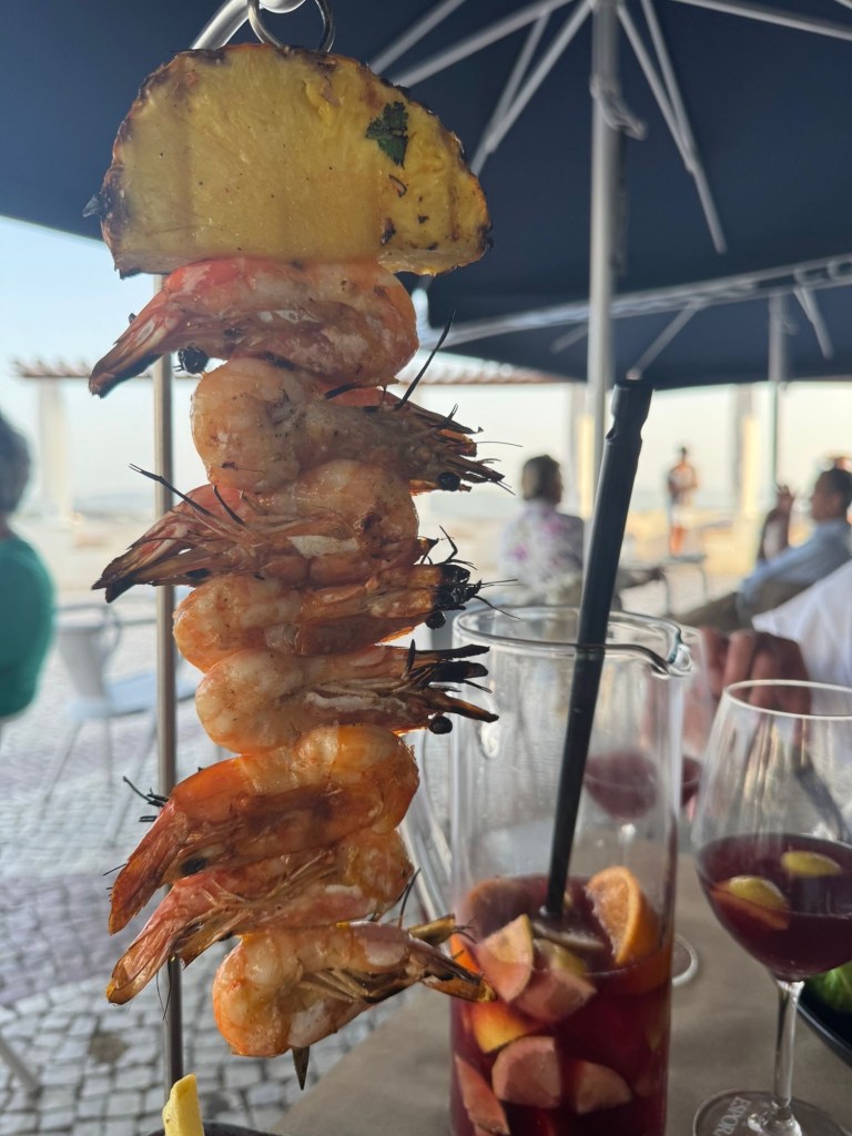 Dort angekommen finden wir das Ziel direkt. Ein kleines, familiengeführtes Fischrestaurant mit toller Aussicht auf den Atlantik. Diese Idee hatten wir nicht allein. Innen ist alles ausgebucht, daher müssen wir draußen essen. Für das leckere Essen haben wir das Frieren in Kauf genommen: