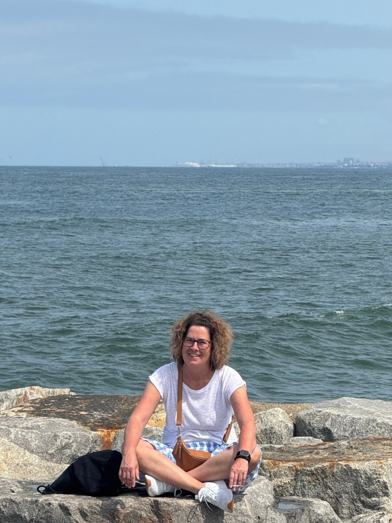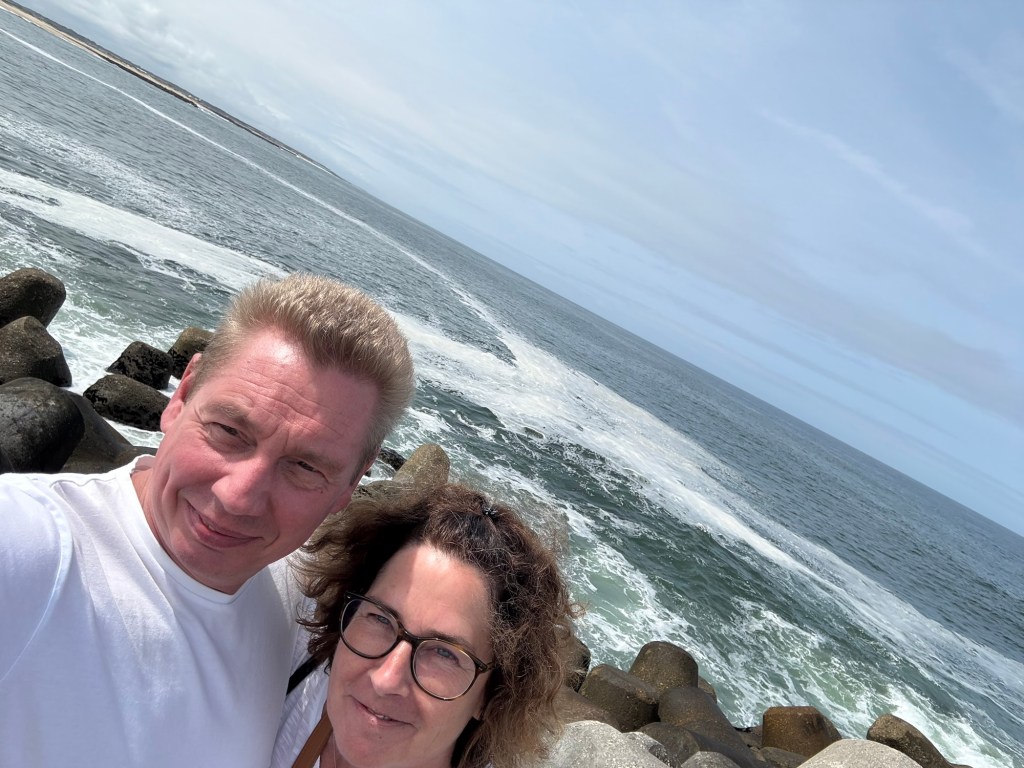 Die Wellen sind heut hoch, deshalb traue ich mich noch nicht ins Wasser. Mein Rettungsschwimmer Gerd kommt aufgrund der Wassertemperatur eh nicht mit. Aber ich verschiebe es einfach auf morgen.