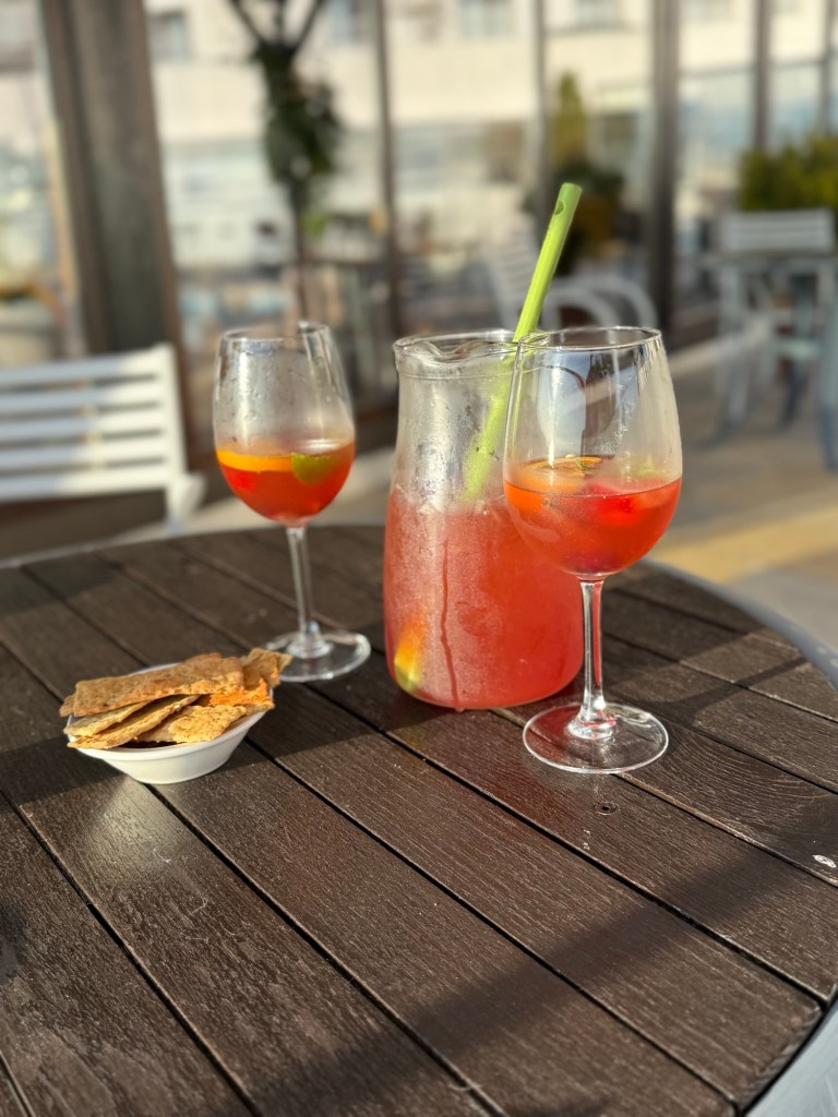 Zum Essen gab es Limoncello Spritz. Morgen können wir ausschlafen – Frühstück gibt es bis 11:30 Uhr 🙌